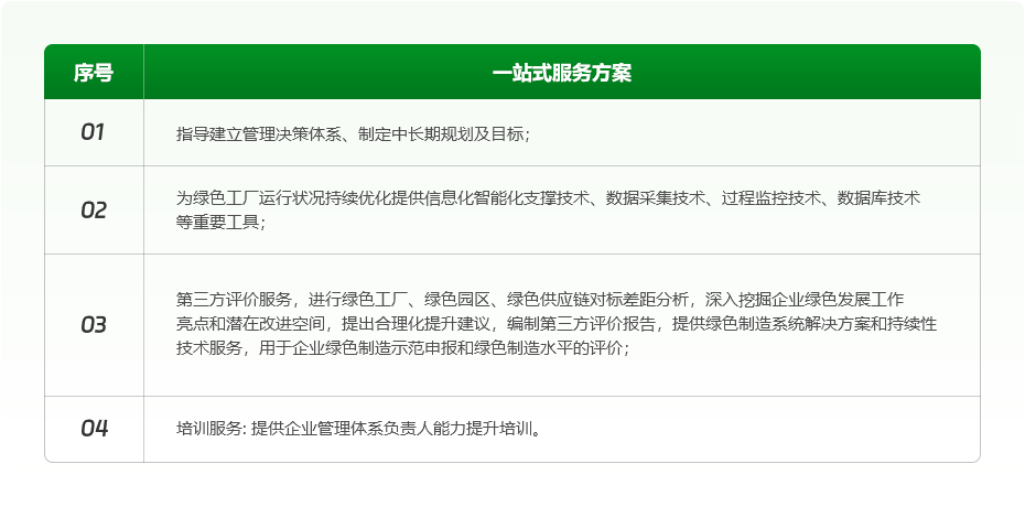 鹏生具备丰富的行业经验和专业能力,可以为企业提供绿色制造体系(市、省、国家三级)第三方评价咨询服务,制定“一企一策”的一站式服务方案。